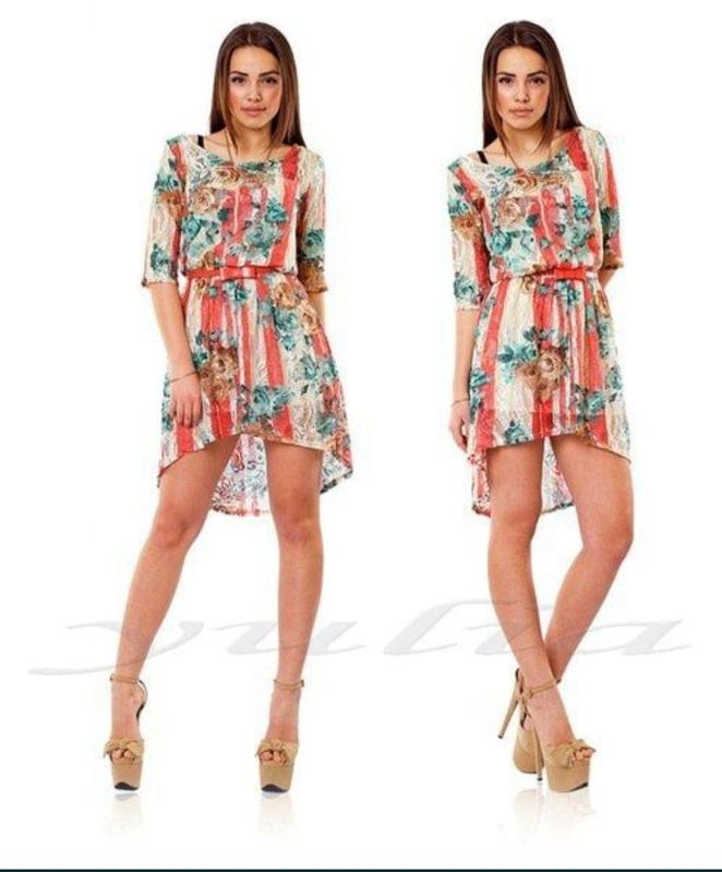 Летнее платье. Верх - кружево, на подкладке. Спереди короче, сзади удлиненное. Размер 44-46