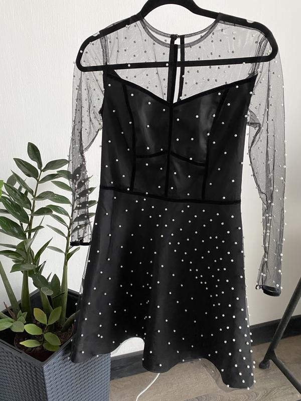 Коктейльное платье, из черной атласной ткани, и прозрачной сетки в жемчужинки. Платье шито под заказ. На размер s-m, замеры дополнительно могу отправить 850 грн