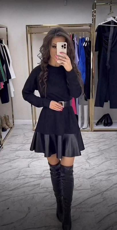 Сукня Тканина : Ангора плотная двусторонняя + эко кожа. Размер: 42-44, 46-48. Цвета: черный. Платье свободного кроя, красивое, стильное и комфортное. Ткань мягкая, плотная и очень приятная.17- Пошив и качество отлично. ‼️Пояс у комплект не входить. Цена: 650 грн