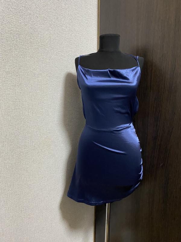 Платье комбинация в размере 46, и на маленькую 48, открытая спина, имеет завязку на спине, драпировку сбоку на резинке тянется