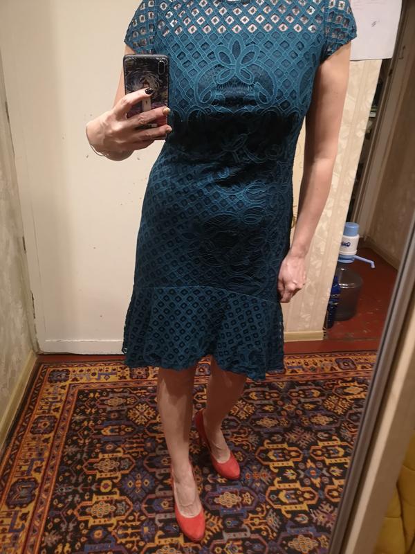 Асимметричная, спереди немного короче. Цвет между зумрудным и темной морской волной. Одетая на ОГ 102, ОТ 80, бедра 104. На подкладке.