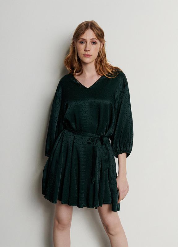 Жіноча сукня темно зеленого кольору. Завжди в тренді. Рукав ліхтарик. Трохи вільного крою.