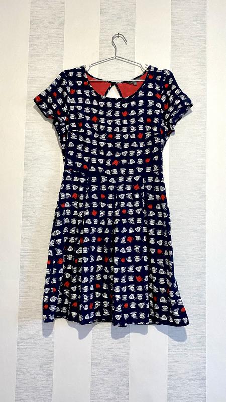 🛍️Розпродаж на весь одяг та аксесуари Ціни від 100 грн 🎁 Сукня в милий принт, від пояса великі складки, на спинці невеликий виріз. Є потайна блискавка збоку. Стан відмінний. Пог 45см, пот 37см, довжина 84см
