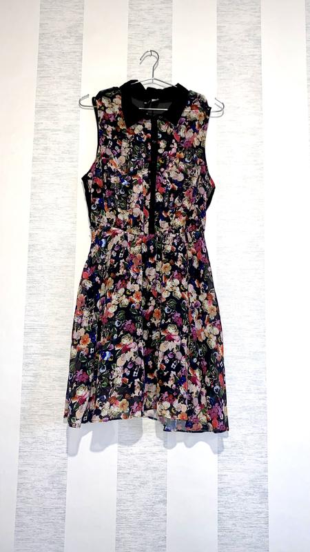 🛍️Розпродаж на весь одяг та аксесуари Ціни від 100грн 🎁 Сукня у відмінному стані, носилося пару раз, красивий принт. Ззаду спинка напівпрозора, попереду і спідниця з підкладкою. Пог 50см, пот 34-44см гумка, довжина 89см.