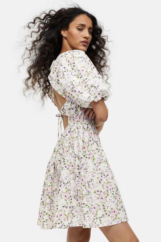 Короткое платье из натуральной ткани рукава-буфы на узкой резинке.Частично открыта спина.Собраный шов на талии с узкой резинкой сзади. Довжина 42+48 Напівобхват грудей 44 НО талії 37-43 НО стегон 76 рукав 30 плечі 35 Накладного платежу нема.Сайт підключив цю функцію без моєї згоди.