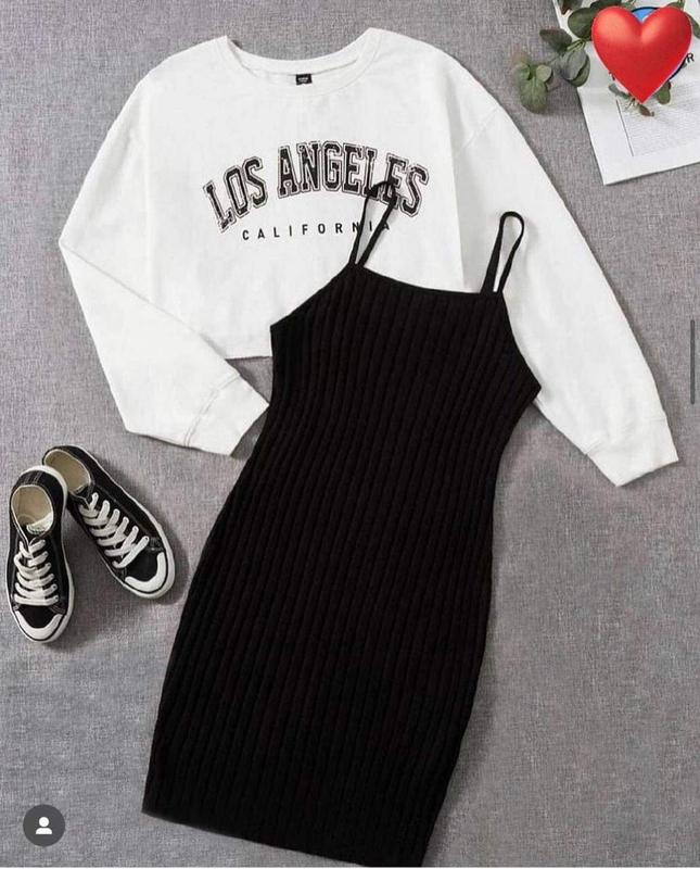 💓Костюм ▫️Мод:647 ▫️Розміри: 42-46 ▫️Тканина: двониті та рубчик 👍Тканина відмінної якості ▫️Колір: чорний, білий 🎉Супер ціна: 649 грн