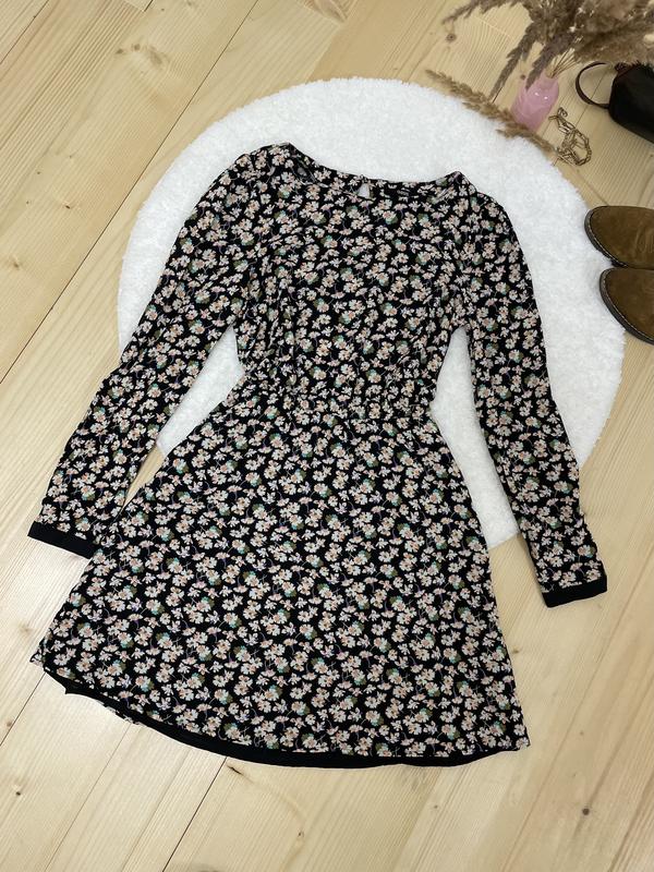 Сукня у квітковий принт. Довгий рукав. Розмір 34 (xs)