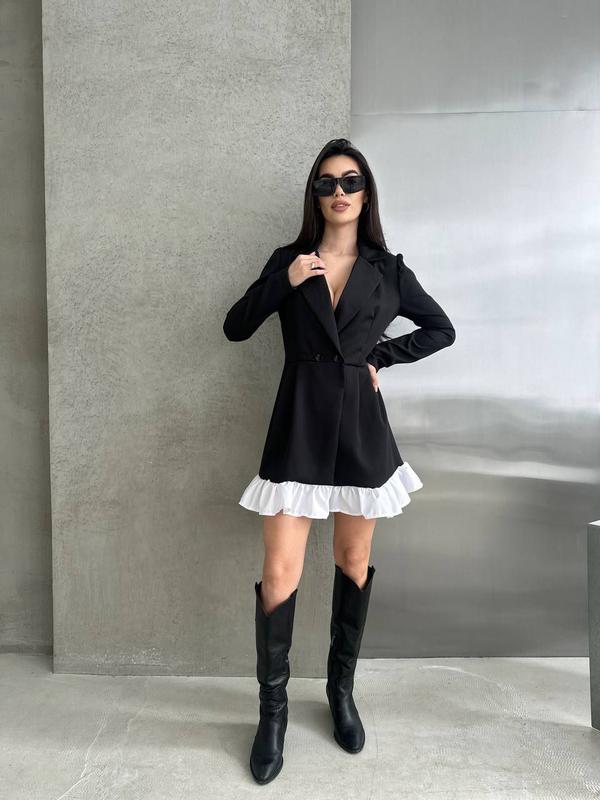 Розкішна сукня-піджак в якій ти будеш неперевершена Мод.535/23 Розмір:42-44,46-48 Тканина: Костюмка+софт Колір: чорний+білий Ціна: 870 грн
