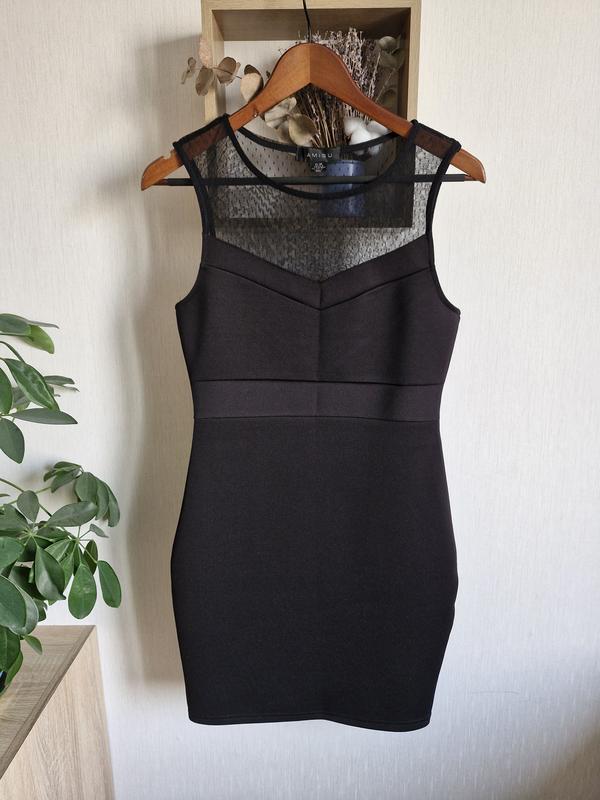 Платье Amisu без подкладки, тянется, плотная. Внутренняя этикетка срезана. Цвет черный Размер 38 М Полу обхват груди - 40 см Полу обхват талии - 35,5 см Длина по спинке - 83 см Имеет маленькую дырочку. Добавлено фото.