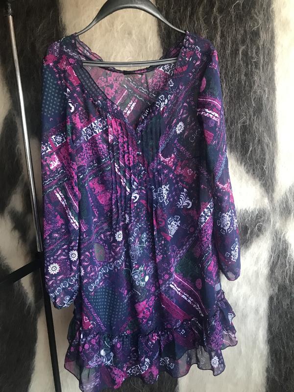 Стильна сукня з шифону . Розмір 38. Але може бути і більший . Пог 107см . Прямого крою . Трохи просвічується .