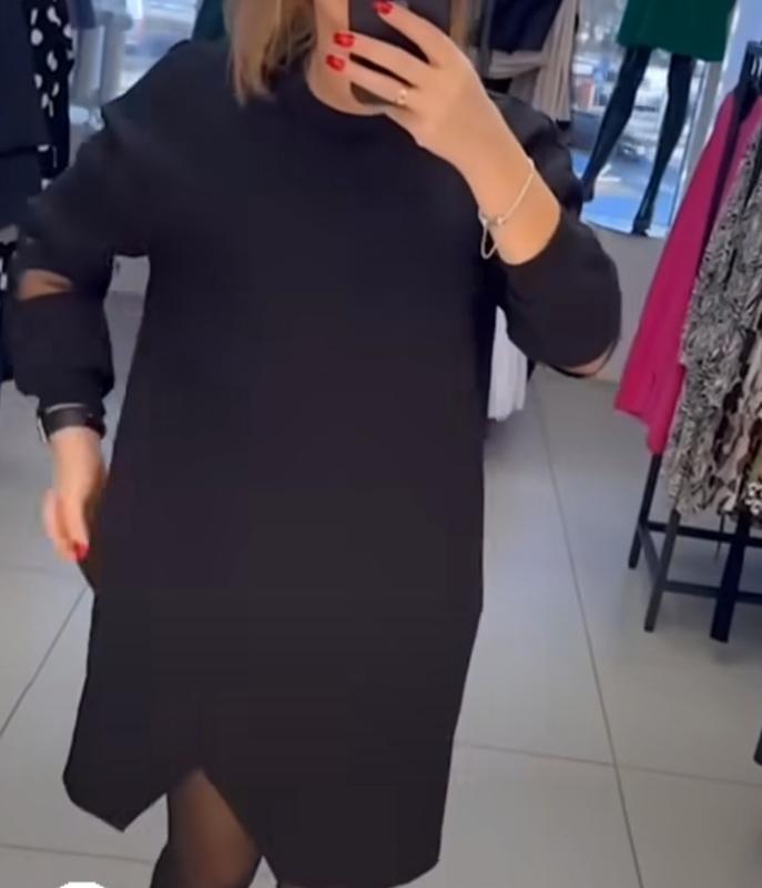 Чудове легеньке плаття,вільного покрою. Тканина крепдайвінг з вставками сітки стрейч. Спереду розріз у вигляді трикутничка... Вільний крій цього плаття тільки підкреслить вашу елегантність.