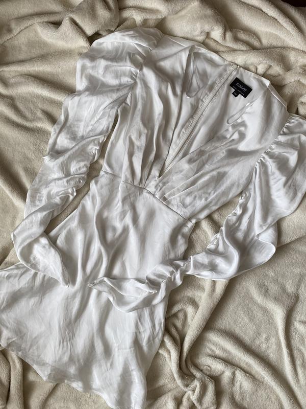 Будь ласка читайте опис❗️ Сатинова сукня Без дефектів Розмір S Гарний обʼємний рукав, позаду на змійці. І на підкладці . Глубоке декольте Довжина по спинці 88 см Талія 34/35 см По грудях 40 см Орієнтуйтеся по замірам, фото на тілі немає ❗️ Питання в повідомлення 🐣