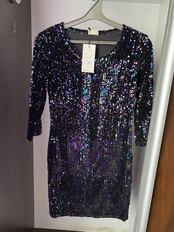 Продам сукню, повністю нова Заміри надам за потреби Розмір С, в мене М і мені трохи замала, фото зробила щоб було видно як лежить на тілі Вживу набагато краща ніж на фото, камера не передає блиск паєток