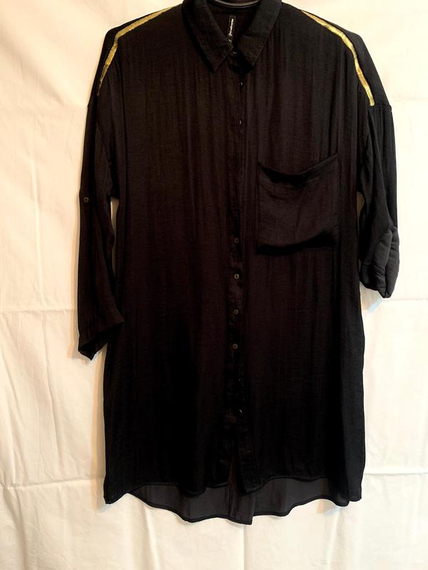Черное платье-рубашка Stradivarius Можно завязать на талии Сзади немного длиннее, рукава подкатываются Размер S