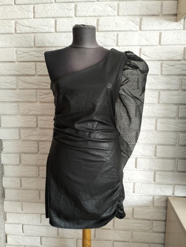 Роскішне плаття Boohoo якісний м'який плотний шкірзамінник на підкладці збоку замочок розмір 8/36 гарно облягає довжина від плеча 86см, рукав 70см, ног 83см, нот 37см