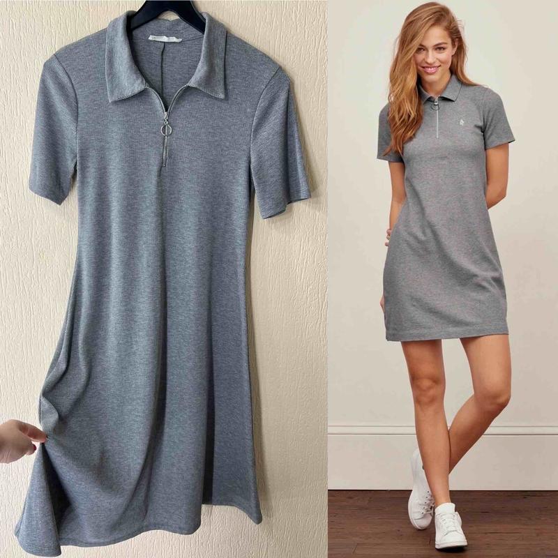 Серое платье в рубчик на молнии