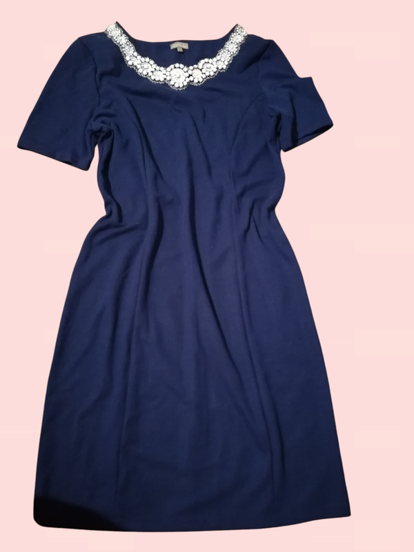 Сукня футляр. Тканина цупка, тримає форму. Комфортна довжина. Сукня гарно сяде по фігурі. Додаткові фото запитуйте, надішлю. Довжина 93 Плечі 38 Рукава 24 Напівобхвати: Груди 46-52 Талія 44-49 Стегна 49 Дефектів немає. D2