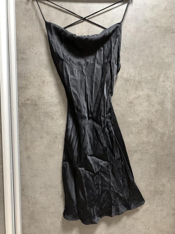 Чорна коктельна сукенка Тканина виглядає дорого. Відкрита спина, зав‘язки на хрест. Підходить на розмір-S/М Є фото на тілі.