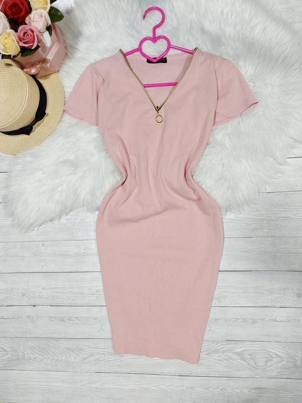Платье в рубчик с декольте замочком нежно розовое платье 46 48 распродаж платье по фигуре