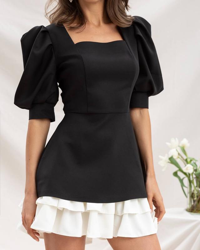 Платье-баска+юбка Код 459 Ткань: креп диагональ, элементы американский креп Камилла Цвета: черный Размер: хс с м л Цена1650 грн