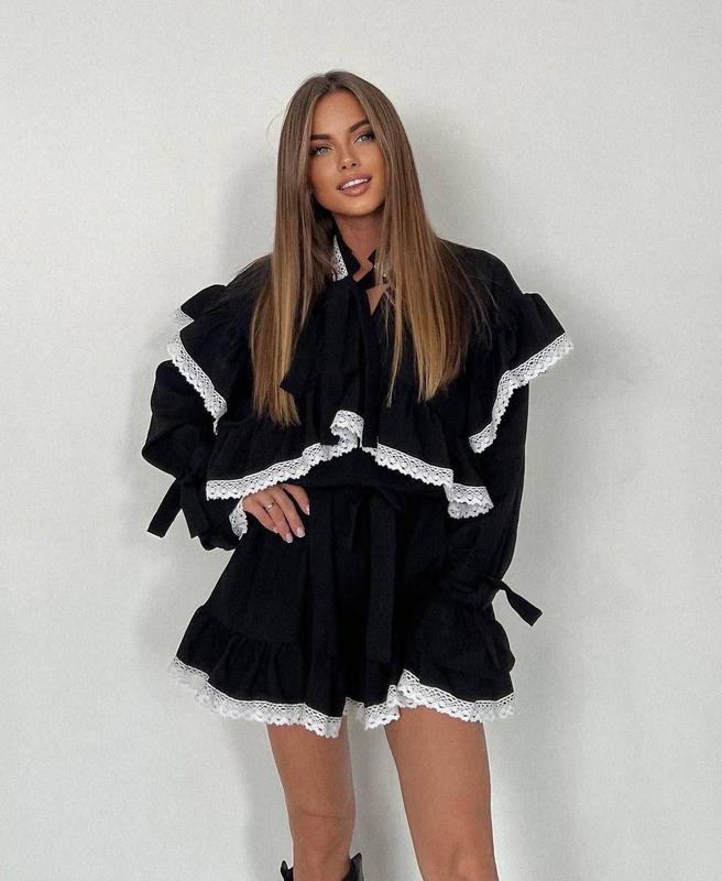 Арт 103-811 Цена 690 грн Сукня ▪Тканина: софт ▪Цвета: черный, пудра, серый ▪Размер:S-L(Универсал) Параметры: Длина изделия 94 Длина рукава 82 ОГ 128 ОТ 156 ОС 170 📌Невероятное платье😍горловина, рукава и пояс с завязками. Платье объемное как на фото, красивое объемная юбка. Приятная ткань, изысканное кружево