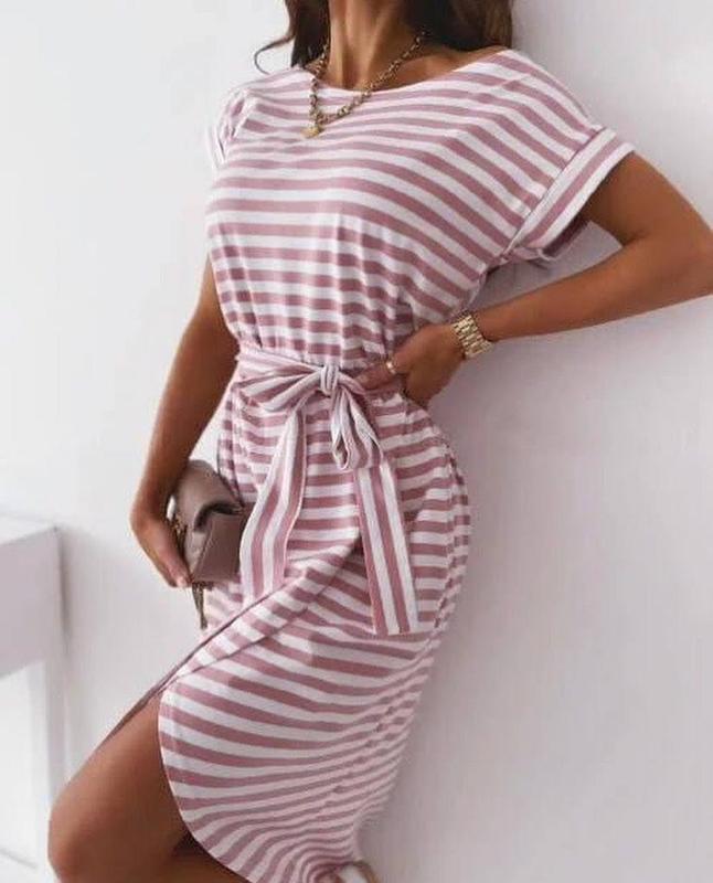 Полосатый принт и длина миди – универсальное модное решение, традиционно популярное в летние сезоны. Новое платье "Lady" от Fashion Girl идеально подойдет для базового гардероба в теплое время года. Интересный фасон, небольшие рукава и удачная длина позволят носить его как на работу, так и на отдых и любые неформальные встречи. Особенности модели Стильное полосатое платье имеет несколько особенностей: - крой на запах; - длина до колена (сзади ниже колен); - цельнокроеные короткие рукава с манжетами; - пояс на резинке. Благодаря мягкой резинке на талии юбка собирается в красивые складки и мягко обволакивает бедра. В комплекте с платьем идет пояс из такой же ткани, который позволяет подчеркнуть осину талию и женственную фигуру. Летнее платье Платье нпшито из легкого, воздушного софта. Материал приятно ощущается на теле, быстро сохнет и не раздражает кожу даже в жаркую погоду. Чтобы изделие сохранило форму и насыщенный цвет, рекомендуется стирать его при низкой температуре (30 градусов).