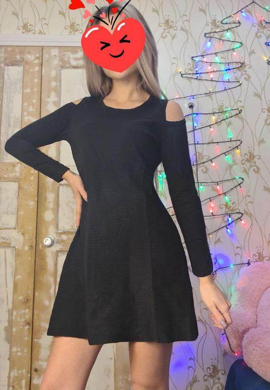 Теплое платье с открытыми плечами. В отличном состоянии. Размер s-m.