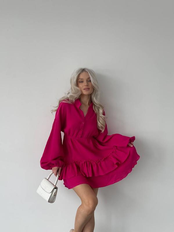 Сукня пуговка🫶🏼😍 Модель 605 ▫Тканина: муслін ▫Розмірний ряд:42-46, 48-52 ▫Кольори: малина , білий , фісташка 2️⃣8️⃣🏷 640 грн ФОТО РЕАЛ Соковиті та в той же час ніжні відтінки нової колекції для твого яскравого літа 🥰 Сукня з фігурними швами та чарівними рукавами😍