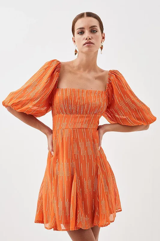 Новое!эффектное шифоновое платье- мини с квадратным вырезом и объемными рукавами karen mil...