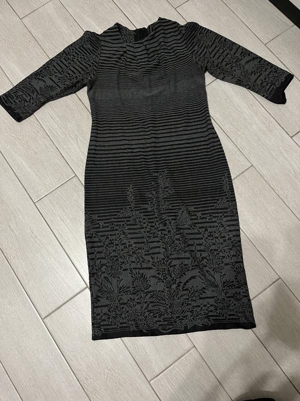 Сукня темно сірого кольору з рослинним принтом Гарно тягнеться Довжина виробу - 100см Ширина під рукавами - 42см Довжина рукава - 40см