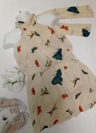Платье сарафан с бантом на спине и открытой спиной с принтом бабочек,пояс резинка, платье на подкладке, ткань полиэстер Размер указанный 8 Замеры на фото