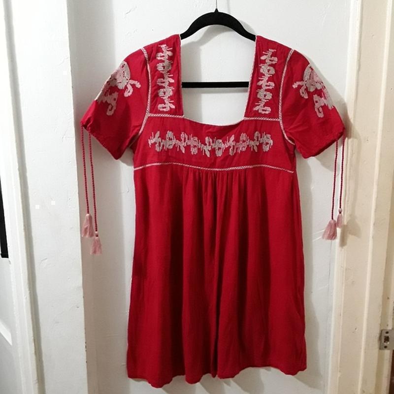 Сток, стан чудовий Розмір L, підійде на М ( як оверсайз) Орієнтуйтесь будь ласка по замірах🙏 Довжина спереді: 88 см, ззаді: 90 см Пог: 48-49 см Ширина в плечах: 36-37 см Іде прямим кроєм Матеріал: вгорі ( всюди де вишивка) 100% бавовна Від лінії вниз поліестер То як я зрозуміла на дотик, бо є 2 бірки зі складом тканини