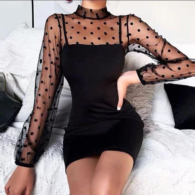Мод. 2044 Милое, романтичное платье мини. ✔Размеры - , 44-46 ✔Ткань -Трикотаж + Сетка Флок Цвета: черный 🔝🔝🔝Отменное КАЧЕСТВО!!!🔝🔝🔝