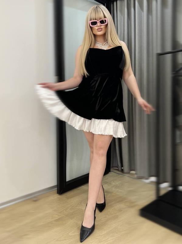 Бархатная Платье со съемной юбкой Арт 5907 💥Цена 1200грн Материал: Стрейч бархат. Хорошей растяжимости. Съемная юбка с воланчиком Гофре. В рельефе спереди вшить косточки. Можно носить как кофточку под брюки и как платье. Измерение: 🔹42-44: ОГ 72-90, ОТ 60-72, ОБ 75-92 🔹46-48: ОГ 82-98, ОТ 65-85, ОБ 90-106 🔹50-52: ОГ 100-108, ОТ 75-90, ОС 106-114 🔹54-56: ОГ 109-116, ОТ 85-100, ОБ 115-127