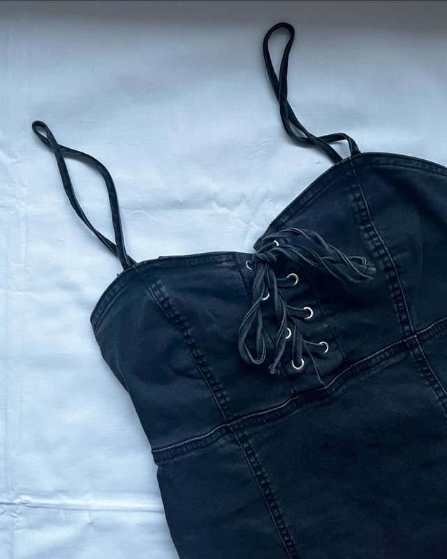 Черное джинсовое платье от бренда H&M. Ткань очень красиво тянется и подчеркивает фигуру. Платье красиво держит грудь среднего размера, можно носить без бюстгалтера. На рост 160см длина платья выше колена, но не мини. Размер - 36 Замеры: длина спереди - 65 см длина сзади - 58 мы грудь - 34 см бедра - 41 см