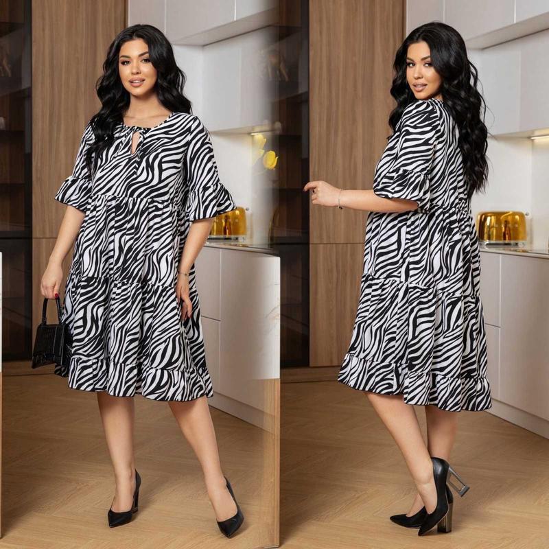 Новинка Сукня Модель № 7489-1 Размер : 46-48; 50-52; 54-56; 58-60 Тканина : софт Длина платья : 107 см. Длина рукава : 37 см. Стильное платье покроя трапеция. Ткань приятная на ощупь, высокого качества не кашлатится. 650.00 грн