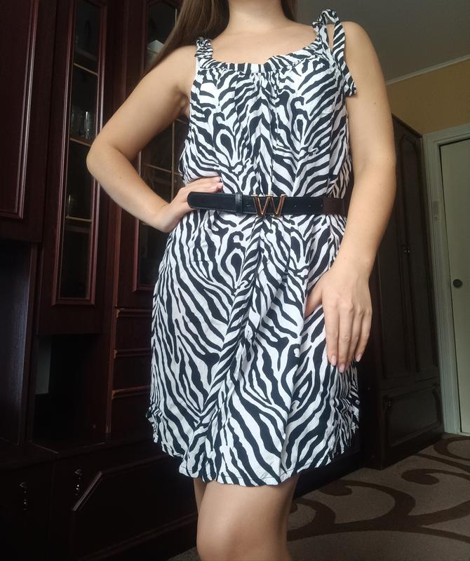 платье принт зебра, свободного кроя, можно носить без пояса, бретели на завязках (класс будет также как пляжное платье), ткань натуральная полуобхват груди 60 см длина без бретелей 73 см