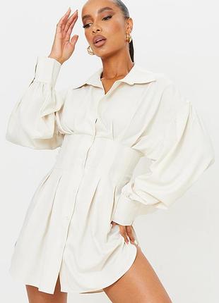 Бежевое платье рубашка мини