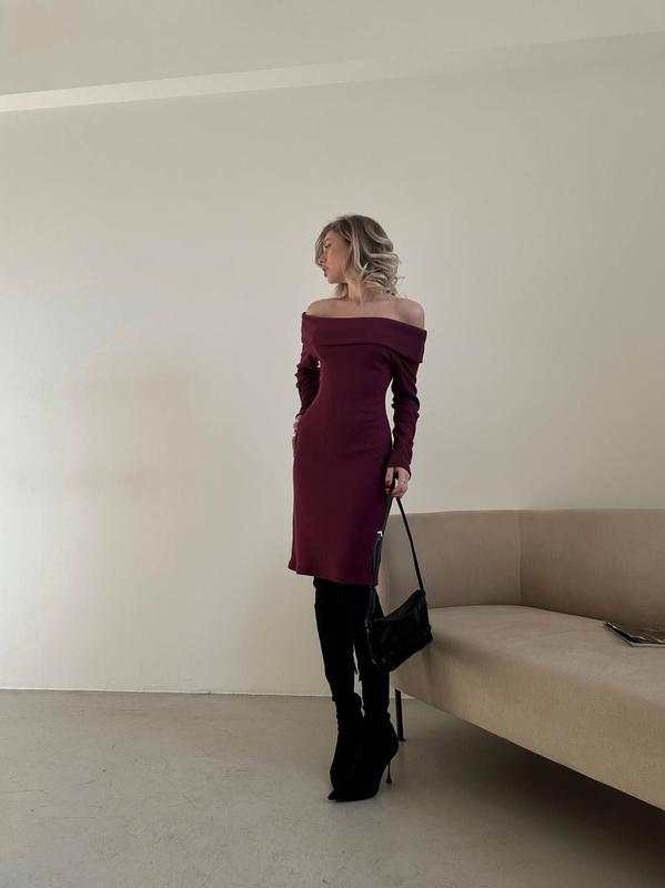 Женское платье Размер: S, M, L, XL Ткань рубчик Супер качество С трендовыми в этом сезоне спущенными плечами