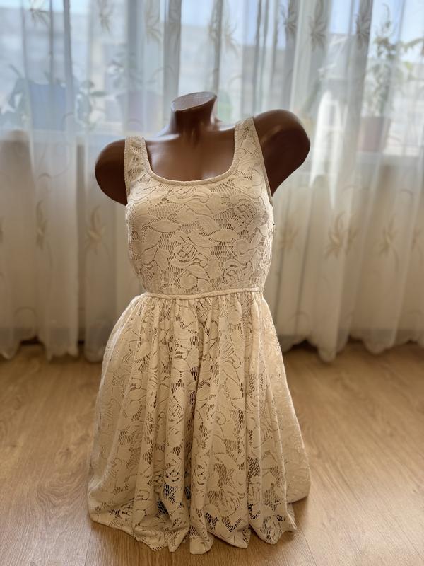 Красивое платье на лето в молочно- бежевом цвете. Размер S. Производство Турция. Длина 86 см. Ткань тянется. Состояние очень красивое, дефектов нет