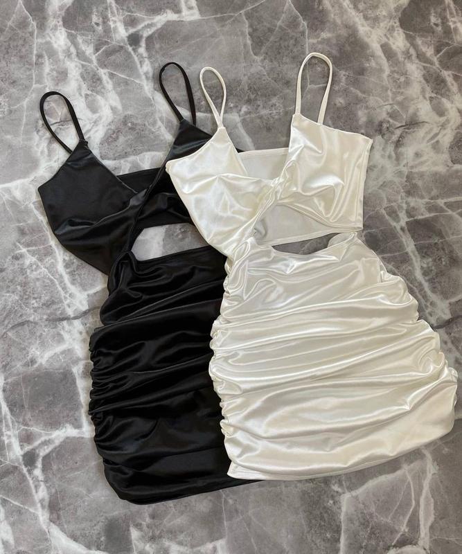 Сукня ▪️Модель 089 ▫️Тканина: королевський атлас (дорога та якісна тканина) ▪️Колір : чорний , білий , синій ▫️Розмір : XS-S , M-L 🌿 Розкішна сучасна сукня в довжині міні на брітельках з якісної та приємної до тіла тканини . Вбрання, яке зробить тебе королевою на будь-якому заході. Виглядає дуже дорого та стильно 🌿