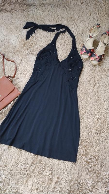 женское платье/сарафан, завязывается на шее, спина открытая, на спине резинка, перед гипюр+ бисер, ткань очень эластичная, хорошо тянется ❗состояние отлично без дефектов 🏷️44-46-48 📐длина 80, ширина 36+резинка, Пог 39+ 🎨 черный