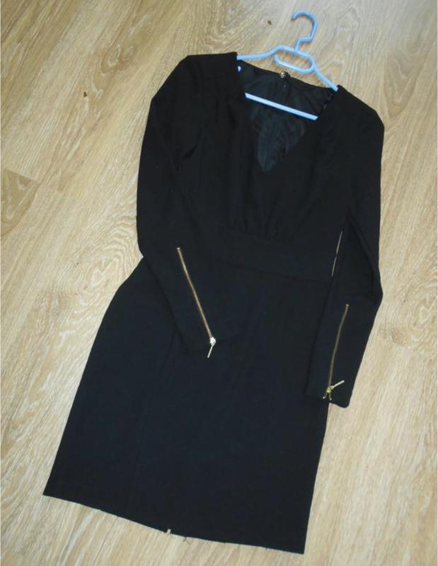 Платье на подкладке насыщенного черного цвета.Бирки о составе нет,но однозначно есть вискоза,немного тянется.Отлично сидит по фигуре.Длина-85см,пог-40-43см,пот-35см,поб-45см,рукав-58см,на спинке-молния-55см.Ткань плотная,хорошо держит форму