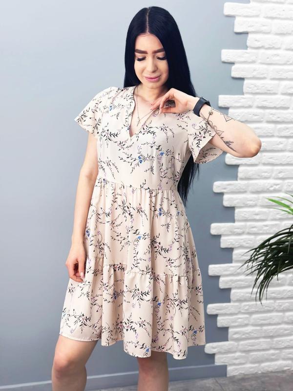 Короткое летнее платье с цветочным принтом "Brittany" Арт.: 9335 595 грн.🔥🔥🔥 размеры: Бежевый 42-44, 46-48, 50-52 Фисташковый 46-48 Голубой 42-44, 46-48, 50-52 Материал: софт ✔️Спешите обновить летний ассортимент!
