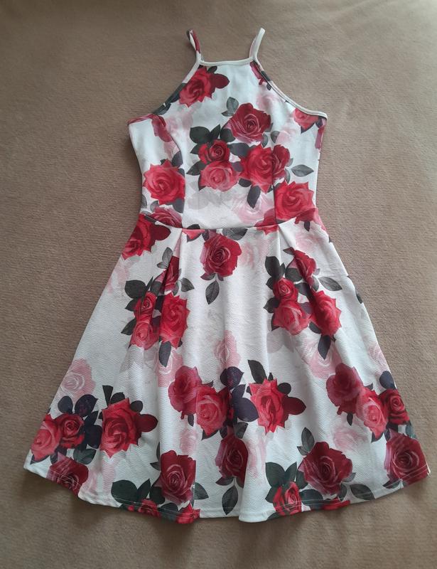 Красивое и яркое платье в цветы, размер 36/S, длина от верха бретели 86 см, по талии 32 см, грудь 39 см, ткань растягивается.
