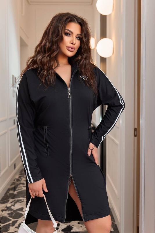 💐СПОРТИВНЕ ПЛАТТЯ 💐 Платье Модель 910VL Размеры: 50-52,54-56 Ткань : двухнитка ( хорошего качества) Свободное платье спорт шик на молнии с двумя бегунками, талия фиксируется резинкой + фиксаторами; сзади платье длиннее, чем впереди; длинный, приспущенный рукав, сверху нашитые ДВА белых лампасы; на груди черно-белая нашивка ( треугольник ) Параметры модели-нормы брюнетки ОГ95, ОТ65, ОБ95, рост 170см, на ней размер 46-48; параметры модели-балта Брюнетки ОГ112, ОТ88, ОБ112, рост 165см, на ней размер 50-52; параметры модели Виктории ОГ110, ОТ88, ОБ111, рост 173см, на ней 50-52; параметры модели Ирины ОГ114, ОТ85, ОБ120, рост 173см, на ней размер 54-56 ЗАМЕРЫ ИСПОЛЬЗОВА ( талия регулируется фиксаторами): РАЗМЕР 46-48: Объем груди 118 Объем талии 104 Объем бёдер 108 Длина по спинке 108 Длина рукава от горловины 74 РАЗМЕР 50-52: Объем груди 128 Объем талии 108 Объем бёдер 116 Длина пр спинке 109 Длина рукава от горловины 74 РАЗМЕР 54-56: Объем груди 138 Объем талии 116 Объем бёдер 124 Длина по спинке 110 Длина рукава от горловины 75 РАЗМЕР 58-60: Объем груди 148 Объем талии 124 Обʼєм стегон 134 Длина по спинке 111 Длина рукава от горловины 76 РОЗМІР 62-64: Объем груди 158 Объем талии 130 Объем бёдер 144 Длина по спинке 112 Длина рукава от горловины 76 ОТПРАВКА в течение 2-4 дней!️ ❌БЕЗОПАСНОСТЬЮ ОПЛАТОЮ не отправляем