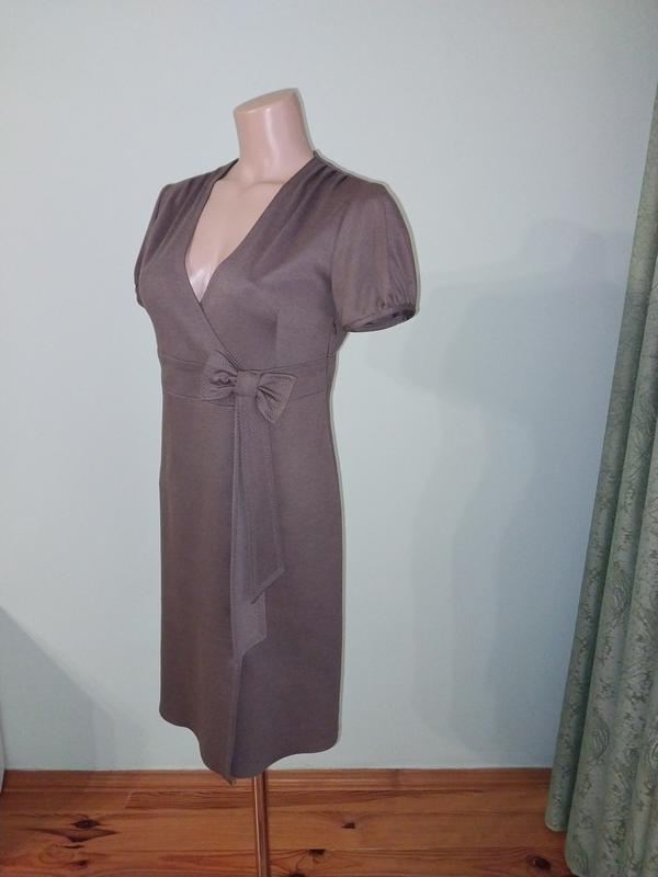 Платье с запахом с коротким рукавом. Украшена бантом и декоративной строчкой. Застежка сбоку на потайной молнии. К низу слегка зауженное. Красивый цвет капучино, молочный шоколад. выглядит гламурно, по деловому. идеально смотрится с тонкой сеточкой под низ. Размер 44-46 Тканина трикотаж. Длина 89 см Длина рукава 17 см ПОГ 45 см ПОТ 40 см ПОБ 43 см Примерка возможна в м Черкасы Возможна доставка в другой город: Новая почта, Розетка, Укрпочтта, Meest умови оплати: безпечна оплата, оплата на карту