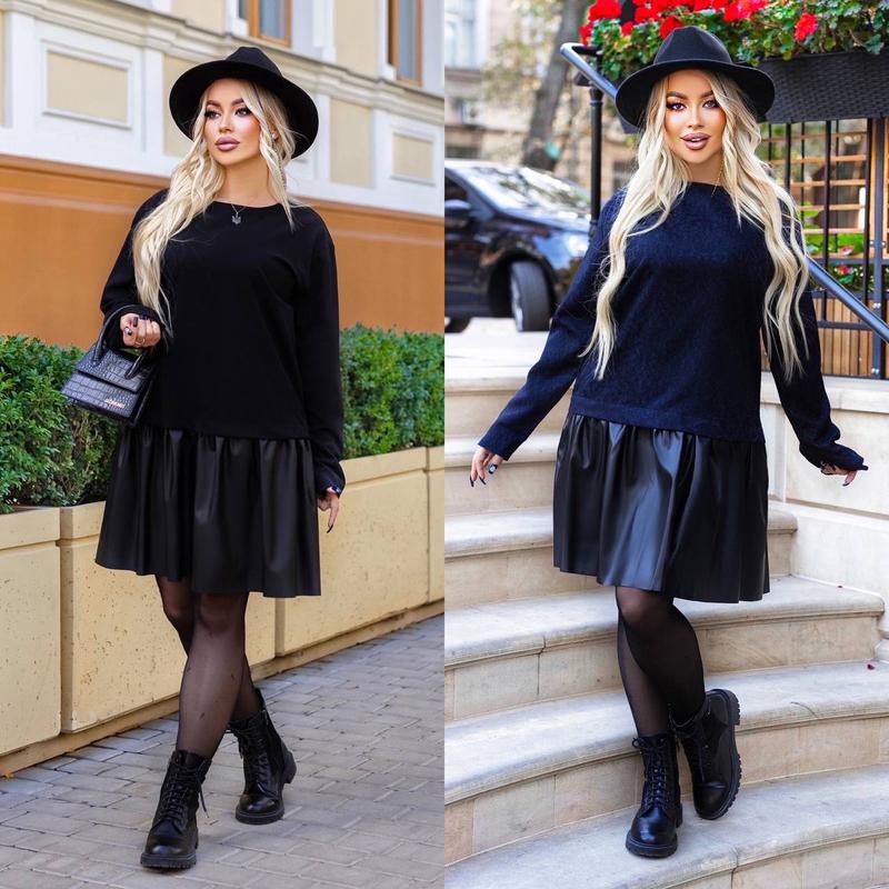 В наявності новинка Хіт 2023 Ця сукня це комфорт, стиль, та кохання з першого погляду Стильна Сукня #382 Розміри 42-46,48-52,54-58 Колір чорний однотон низ кожзам, синій жакард низ кожзам Тканина: плотний трикотаж крепдайвінг, добре тянеться та дуже комфортна Йде оверсайс, добре приховує животик, також підійде і для вагітних на моделі розмір 48-52 Параметри 108 90 110 см Заміри на #382 42-46 ОГ 110см От 114см, бедра оверсайс, довжина 91 см 48-52 ОГ 120см От 122 см, бедра оверсайс, довжина 93 см 54-58 ОГ 130 см От 135см, бедра оверсайс, довжина 95 см ольив 820.00 грн