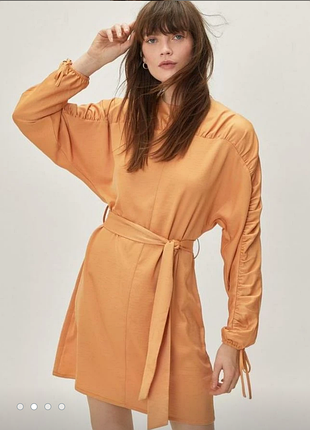 мини платье с вшитым рукавом, с пояском, с атласной кокеткой, застегивается на скрытую молнию, размер 38/40 Ширина плечей (приблизно) 49 см Длина рукава от горловины 74 см Подмышками (приблизительно) 53 см ПОГ 53 см ПОТ 49 см ПОБ 56 см Длина по спинке 95 см