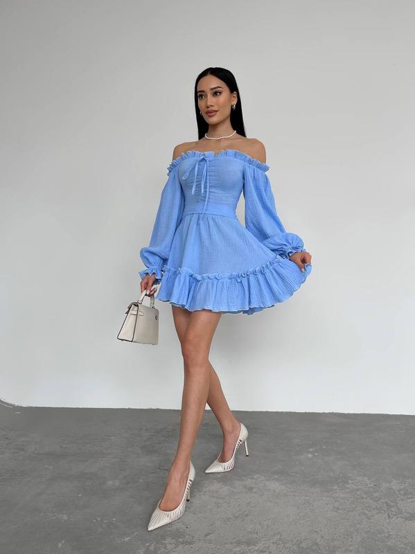 Короткое платье из муслина с резинкой и рюшами на рукавах груди